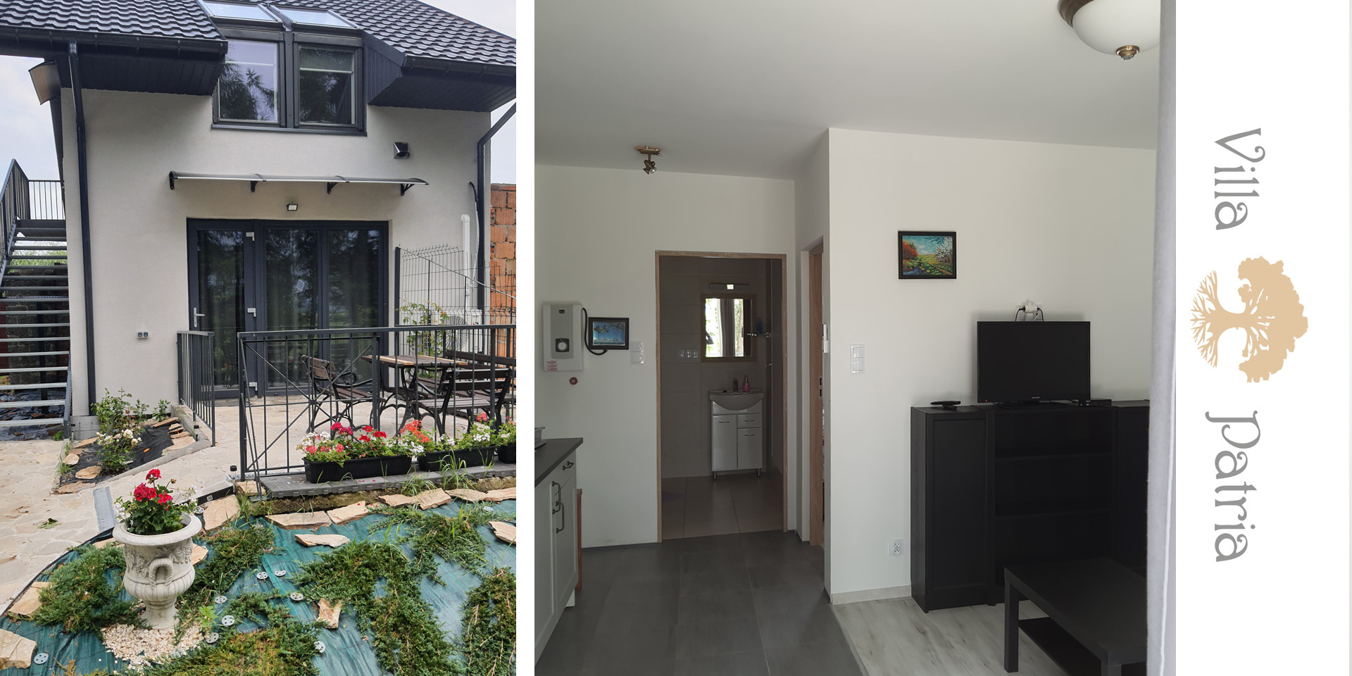 Nasz kompleks noclegowy pod nazwą Villa Patria stanowi dawne siedlisko gospodarstwa rolnego przebudowane, zaadoptowane dla potrzeb gościnnych, w tym noclegowych, rekreacyjnych, zabawowych. Do Państwa dyspozycji oddajemy noclegi w klimatyzowanych apartamentów 2+2. Każdy z wariantów noclegowych dysponuje własnym aneksem kuchennym, toaletą z łazienką, dostępem do internetu oraz TV. Na terenie obiektu w ramach oferty mamy do dyspozycji dla gości: